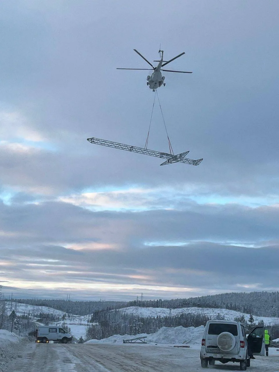 Параллельно продолжаются работы по установке постоянных опор линии электропередачи. Три опоры уже установлены, четвёртая полностью готова, но из-за погодных условий монтаж временно приостановлен. Идёт подготовка к установке провода. В дальнейшем планируем подключить дополнительную линию, которая усилит электроснабжение Мурманска.