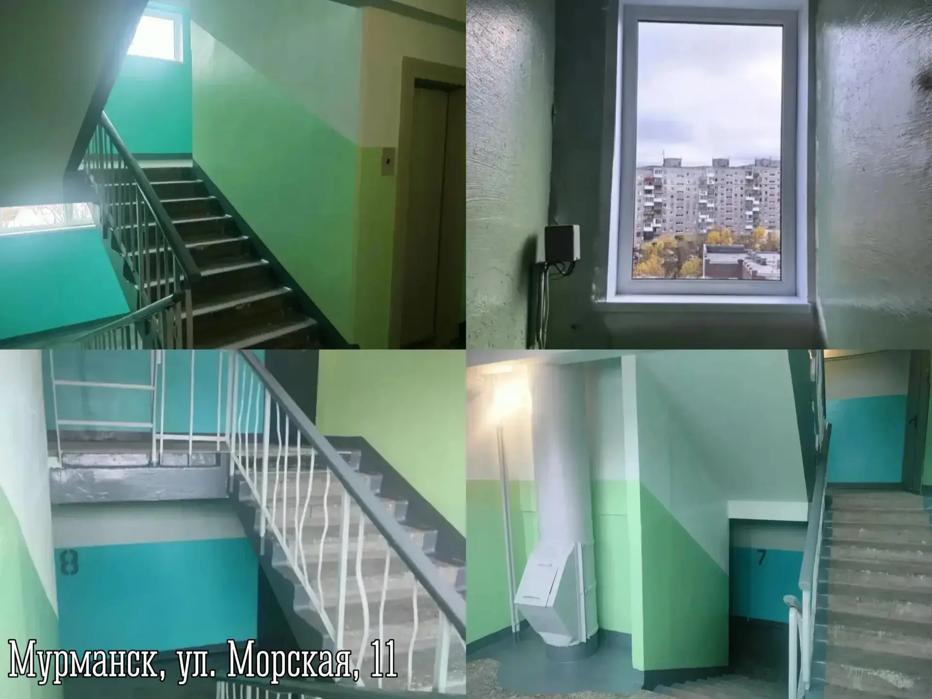 В г. Мурманске выполнен косметический ремонт подъезда многоквартирного дома по ул. Морская, д. 11. Дополнительно установлено окно в машинном помещении лифта.