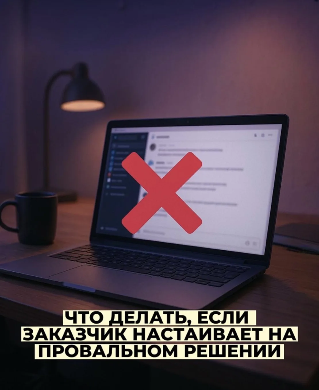 Но просто отказать - не вариант. Можно испортить отношения, потерять заказ или заработать репутацию «самого сложного исполнителя». Как быть? В посте разберем по шагам, как мягко, но уверенно отбиваться от провальных идей - или хотя бы минимизировать ущерб, если придется их реализовывать.