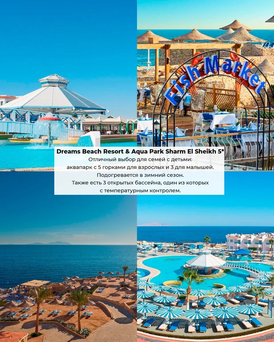 Стоимость начинается от 202 087₽ на двоих взрослых + ребенок с вылетом в декабре из Мск на 9 ночей, отель Dreams Beach Resort & Aqua Park Sharm El Sheikh 5* на все включено.