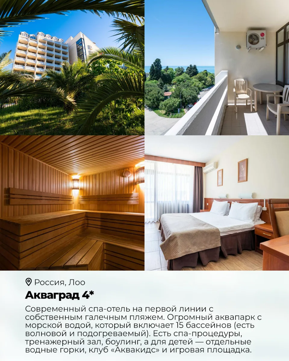 Листай карточки — мы собрали лучшие варианты размещения в СПА отелях города.