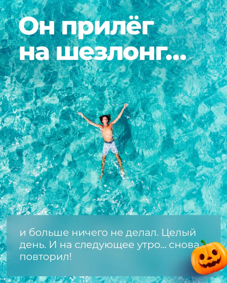 Сегодня — идеальный день, чтобы позволить себе немного полениться, отдохнуть и помечтать об отдыхе на берегу моря!