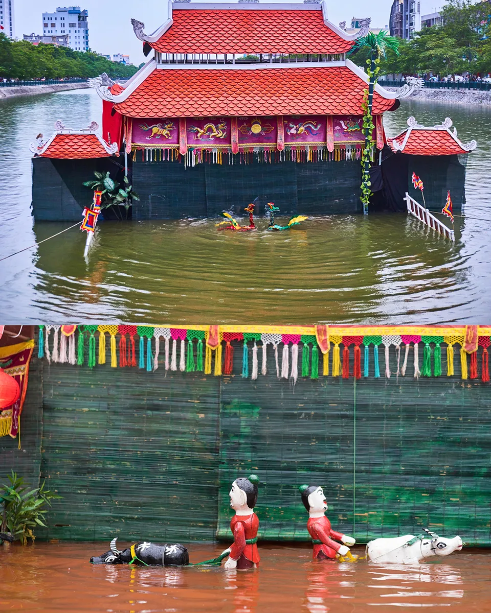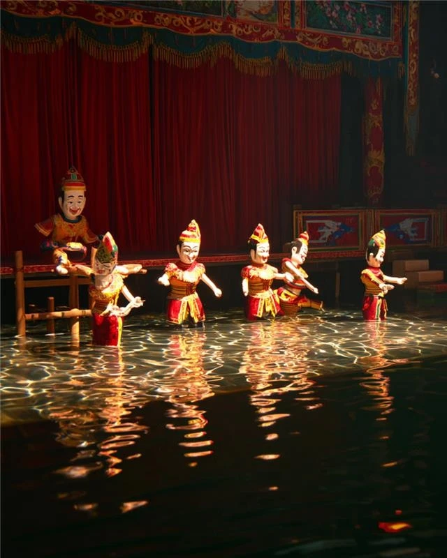 Как это выглядит? Куклы (ростом до полуметра) словно танцуют на водной глади. Артисты-кукловоды по пояс стоят в воде за бамбуковой ширмой и управляют ими с помощью длинных шестов и нитей. Всё действо сопровождается живой народной музыкой.