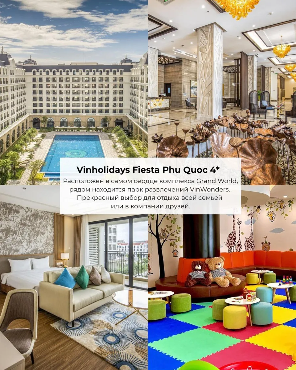 Стоимость с вылетом 30.11 из Москвы начинается от 340 345 ₽ на двоих на 10 ночей из Мск, отель Vinholidays Fiesta Phu Quoc4 *