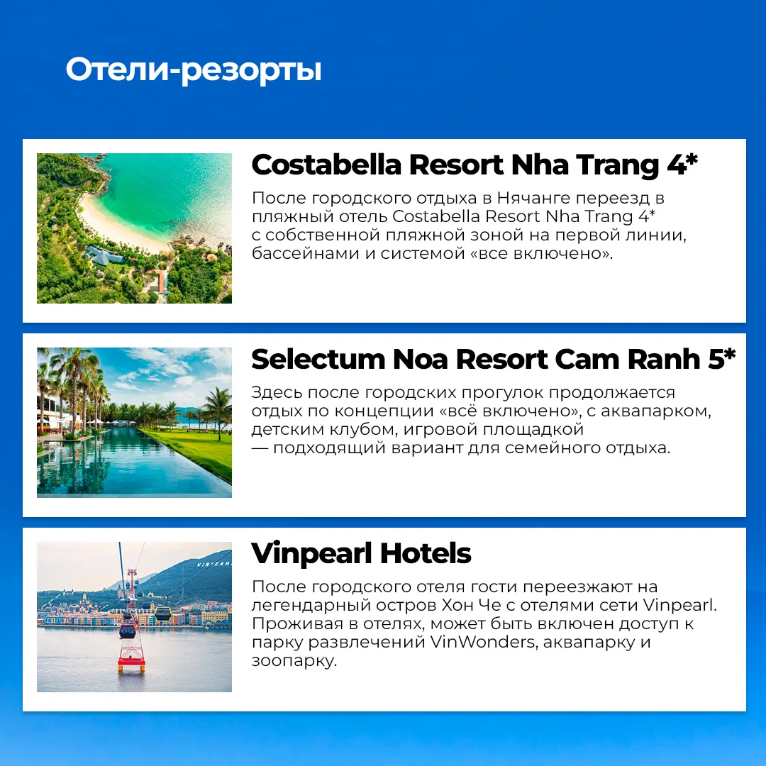 • «Нячанг городские отели + Costabella Resort Nha Trang 4*» — от 168 029 ₽ на 8 ночей, вылет 01.04.2024