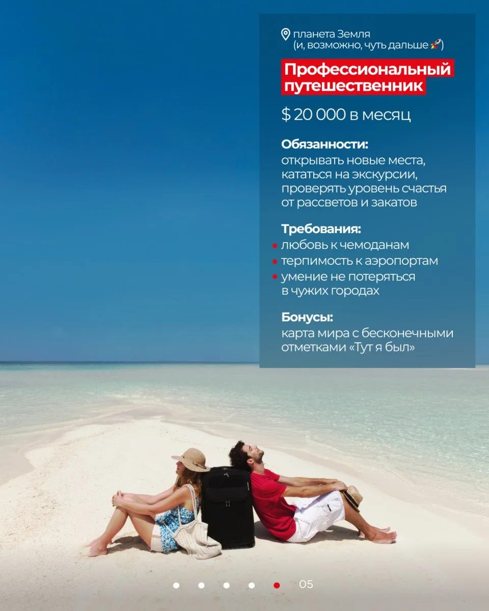 Если вы когда-нибудь хотели, чтобы зарплату платили за то, что другие называют отпуском — ловите список предложений, от которых сложно отказаться.