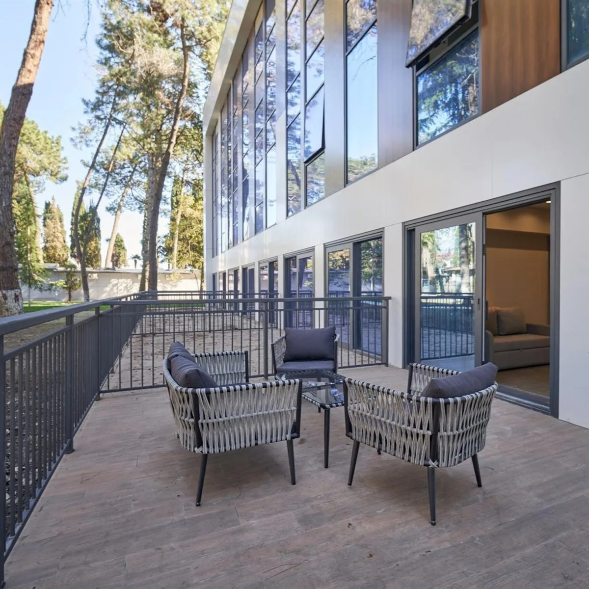 👍 Отель находится в самом центре Адлера, в зелёной парковой зоне, до моря всего 10 минут пешком.