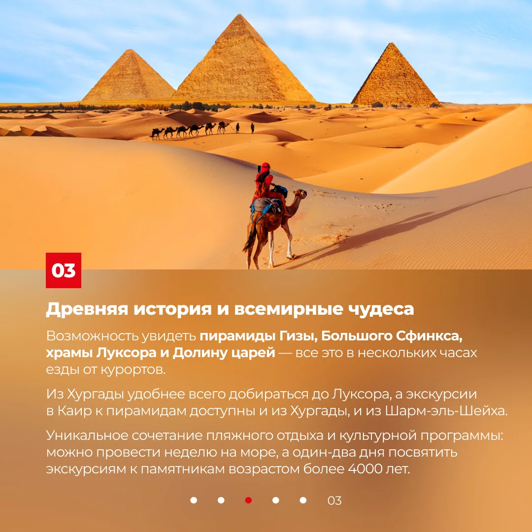 Египет — это не только широкие пляжи с золотистым песком, но и множество других поводов, чтобы посетить это направление.