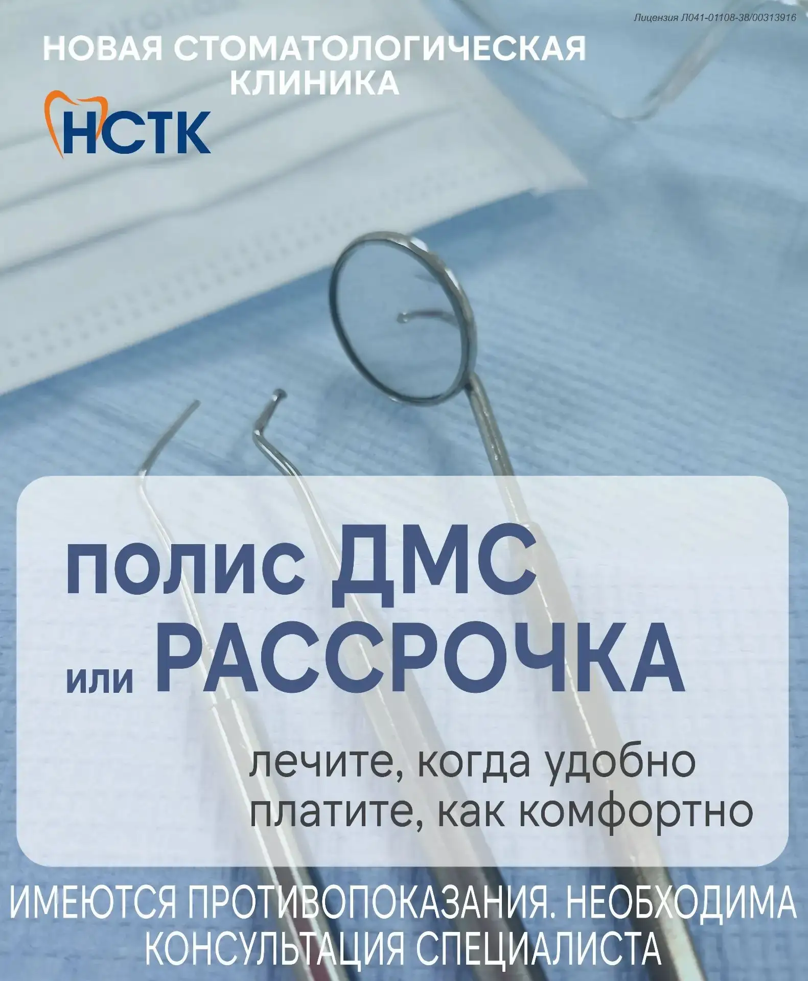 Реклама. ООО "Новая стоматологическая клиника", ИНН: 3801129820, erid: 2VtzqumgXUs