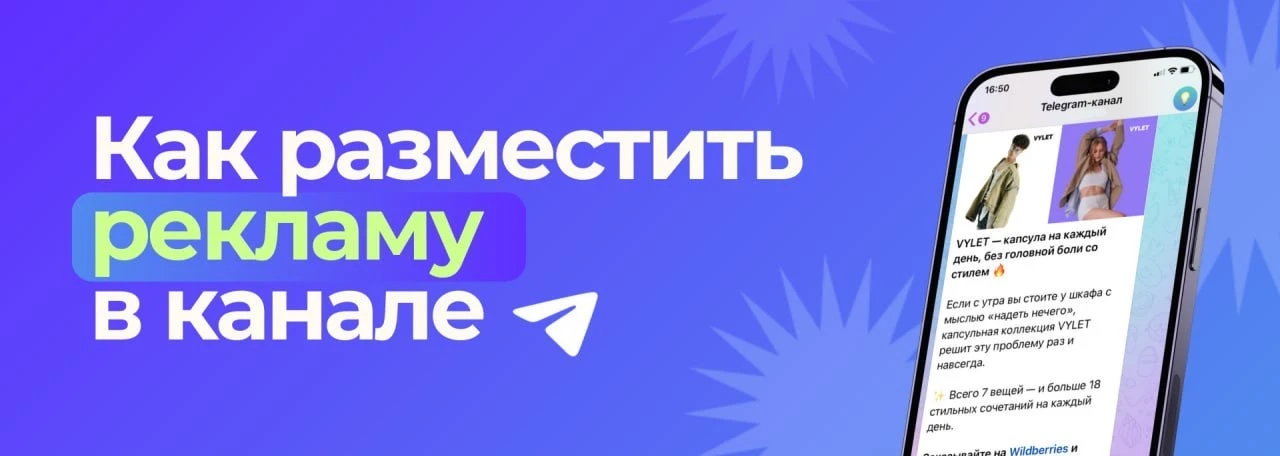 Разместить рекламу можно через платформу Telega.in. Это занимает несколько минут.