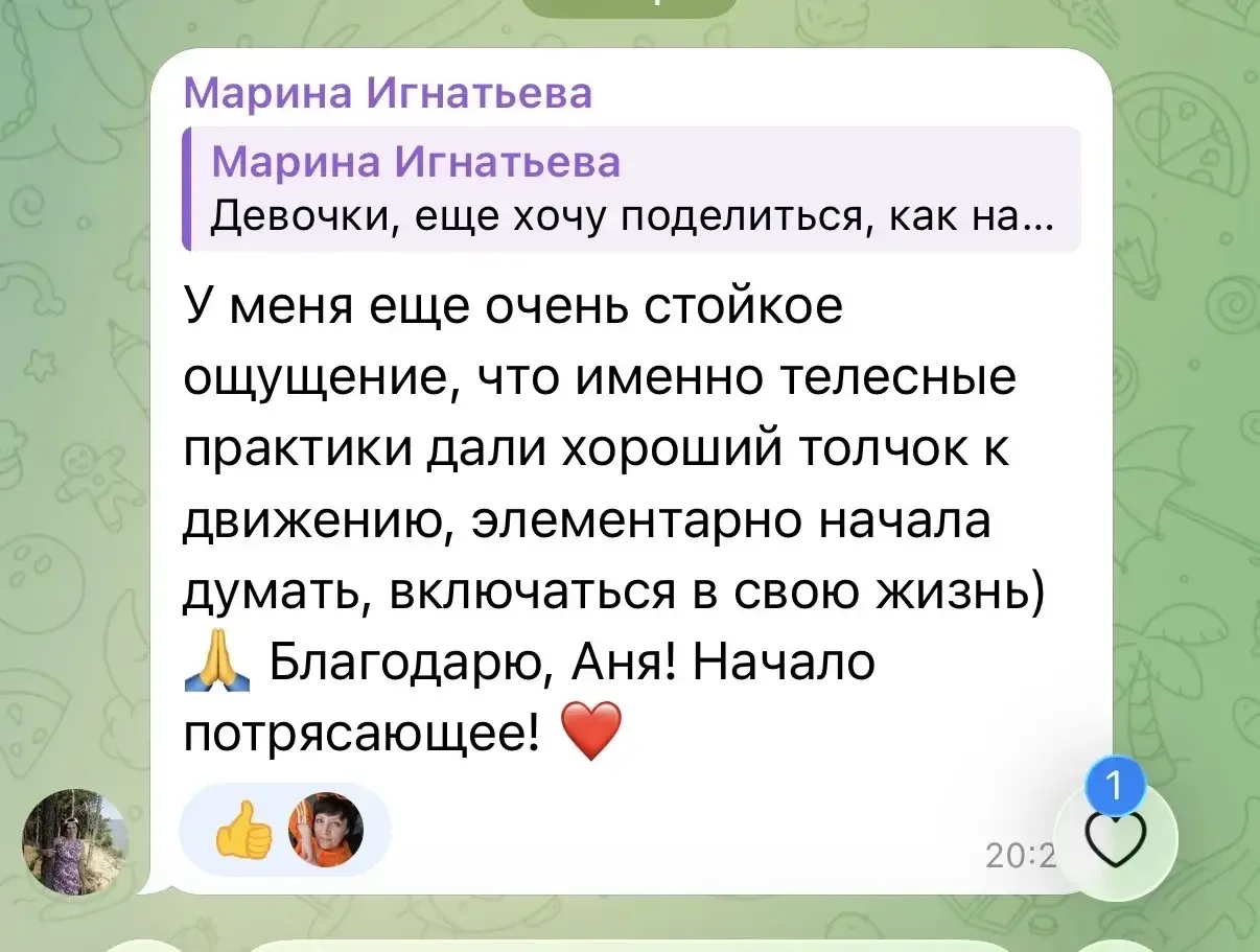 🌿 «За последние полгода прохожу методично ваши тренинги — колоссальные изменения. Начала реализовывать то, о чём раньше и думать не решалась» — Олеся