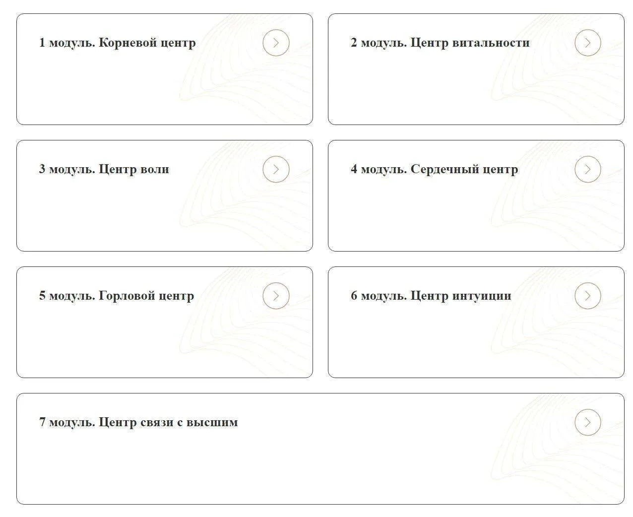На курсе «Сила в теле» более 40 практик, которые охватывают каждый из 7 основных телесных центров. Таким образом вы сможете глубоко проработать все важные зоны, решая одновременно через тело какие-то свои проблемы.