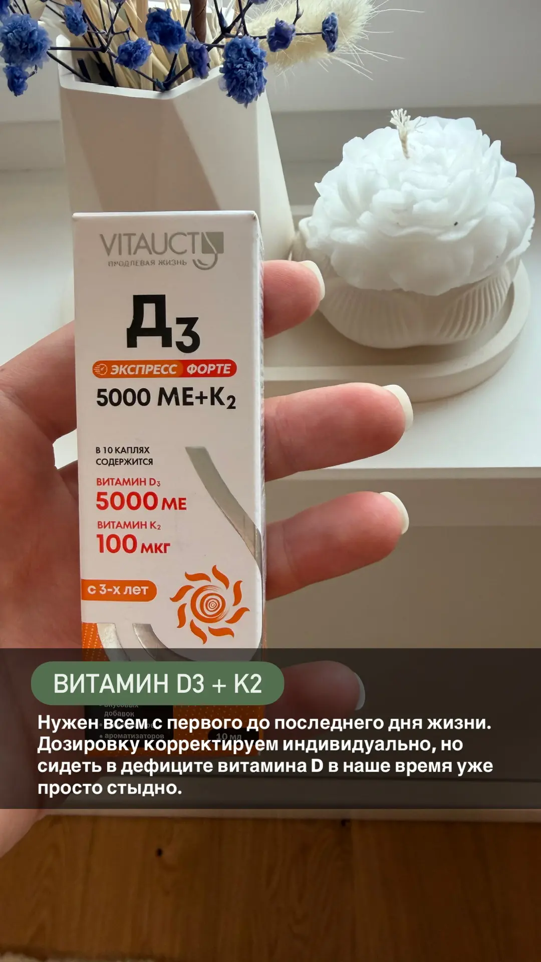 ✔️ Для восполнения можно использовать сочетание D3 + K2. D3 помогает кальцию попасть в организм, а K2 «проводит» его «за руку» прямо в кости. К2 особенно актуален пожилым.