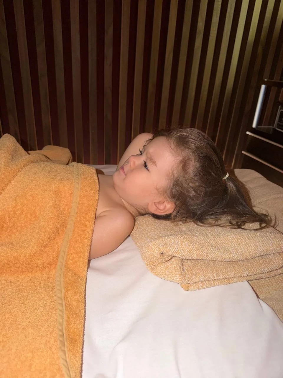 Отдыхали с семьей в отеле, сводила детей на массаж. Приучаю их к этой полезной процедуре. Объясняю все правила. Илюша уже с радостью идет, а Соня была в первый раз. Ей тоже все понравилось, даже не всплакнула, а с удовольствием лежала.