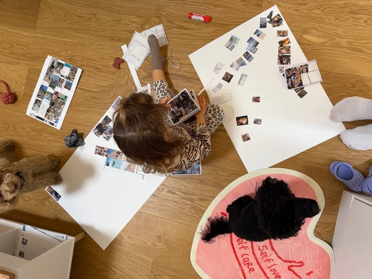 Кстати, с обоими детьми составляли карты желаний. Илюшину покажу чуть позже, он ещё ее доделывает. А Соня клеила картинки из моих остатков, и так интересно наблюдать за её мечтами: профессиональный конный спорт и своя кошка 🐈⬛