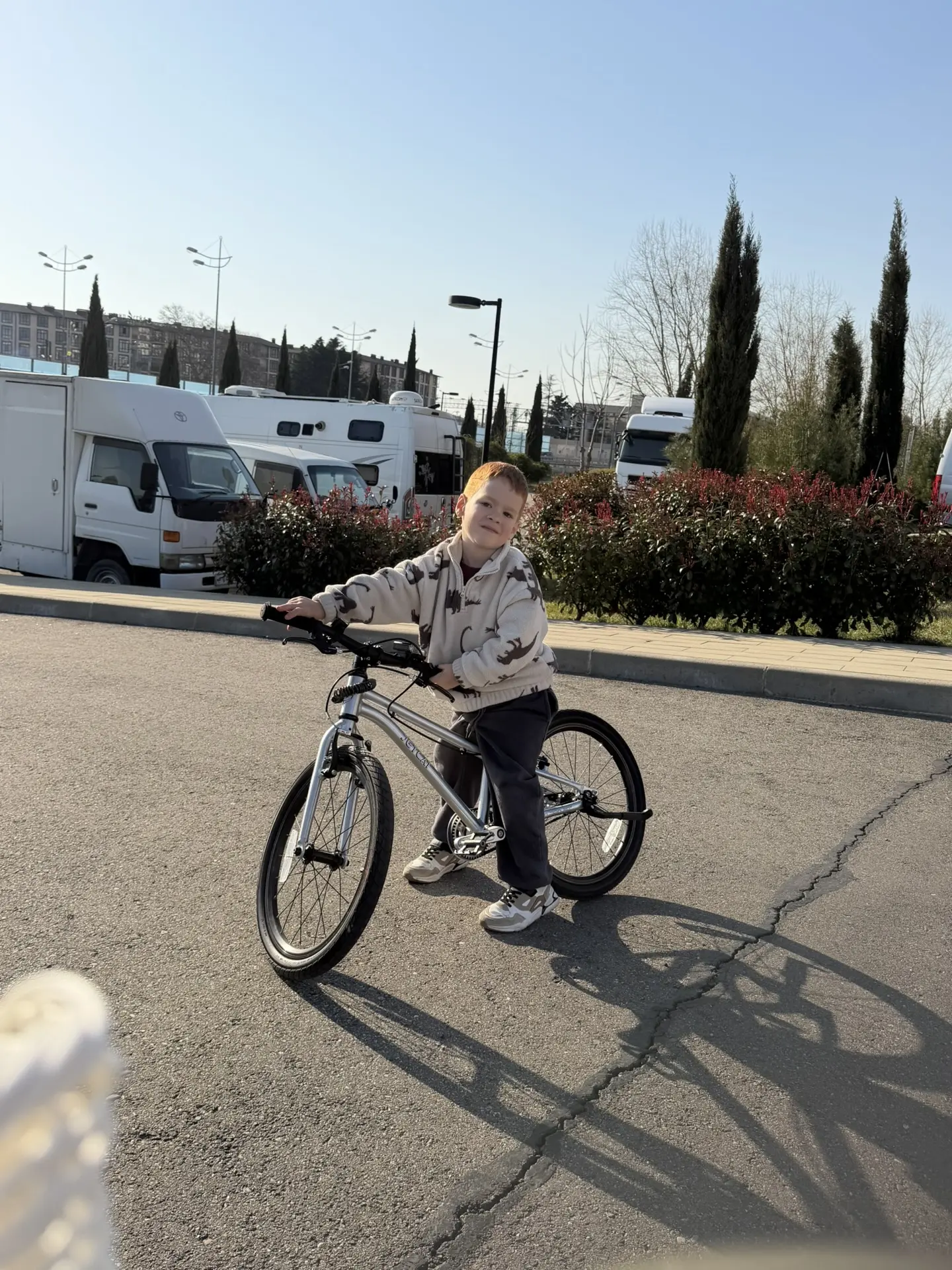 Погода прекрасная ☀️ Я люблю этот период в Сочи, когда у нас еще заснеженные горы, но уже становится тепло. Поэтому, хоть ненадолго закрывали, но открыли снова велосезон. Илюша уже очень хорошо ездит. Жалко, Соня еще мала, но в перспективе, конечно, как можно быстрее тоже научить ее ездить на велосипеде. Я думаю, что смотря на брата, даже мотивации больше 💯