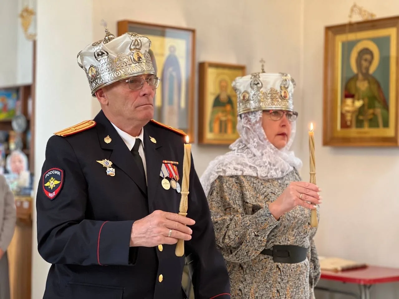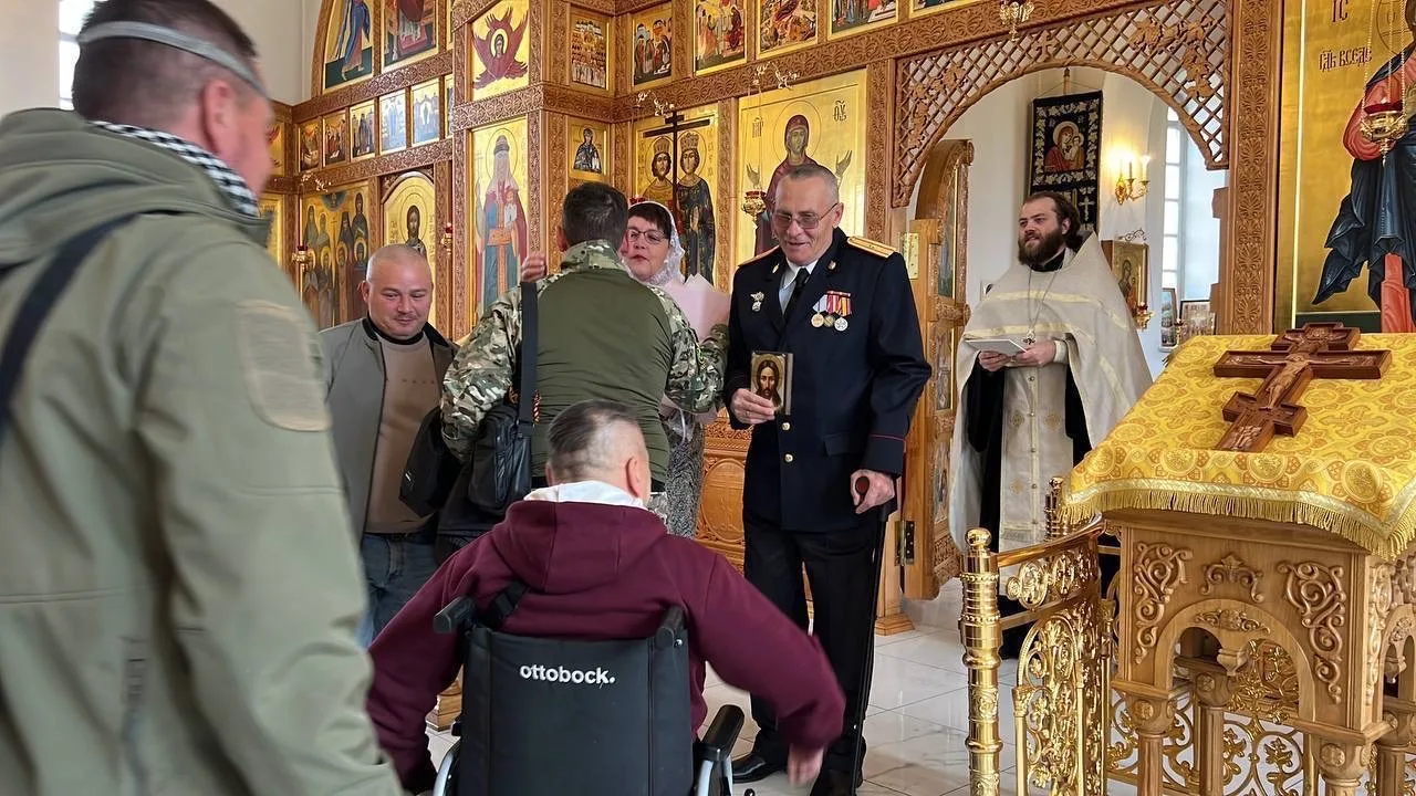 Пара состоит в браке с 2023 года, но решение венчаться они приняли именно в Печорах. На церемонии присутствовали друзья семьи – ветераны из других регионов, которые в настоящее время проходят реабилитацию в Паломническом центре.