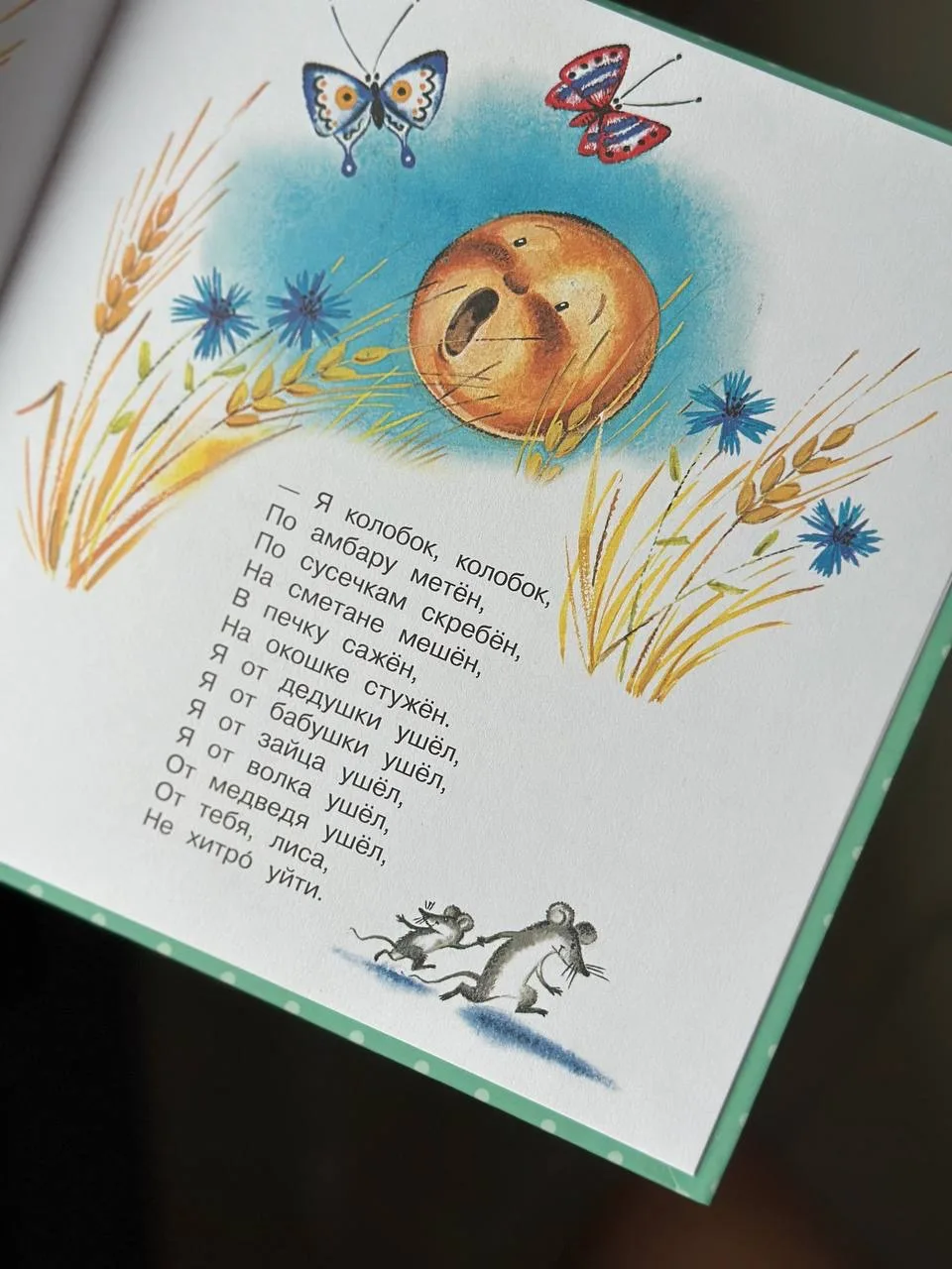 Так что было принято решение, конечно же, пополнить Софину библиотеку книгой «Колобок» с нежными и непугающими иллюстрациями (нет, правда, как жутко его иногда изображают😳) Мало текста - много картинок, все как мы любим!