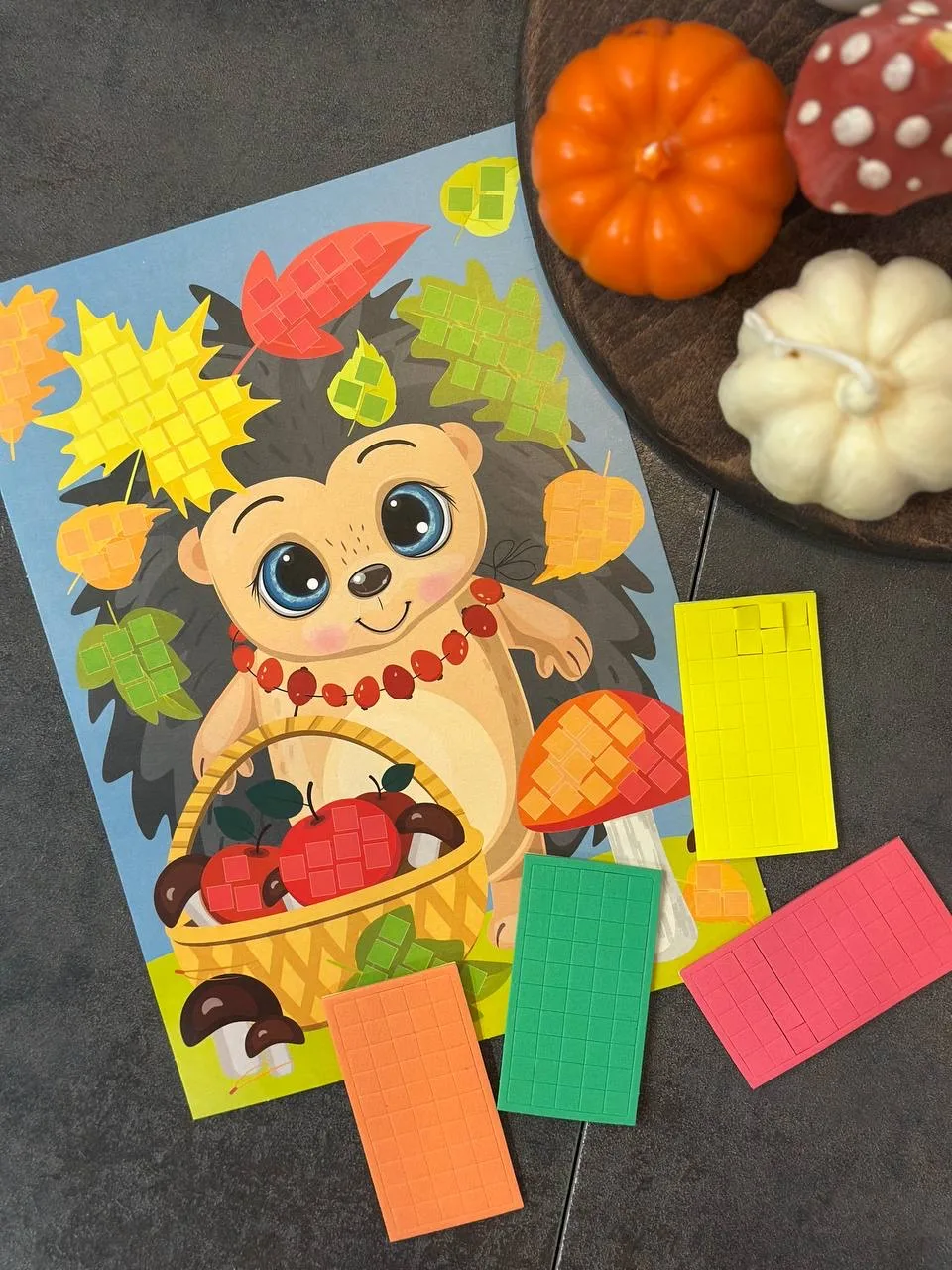 Смотрите какую красивую осеннюю аппликацию в виде ежика я нашла для Софы🍂