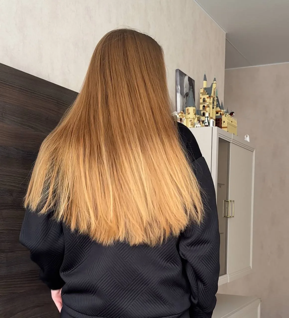 У меня волосы очень сильно выгорают на солнце и этот резкий переход виден только на свету. Если бы я жила у моря, мне кажется я была бы блондинкой.