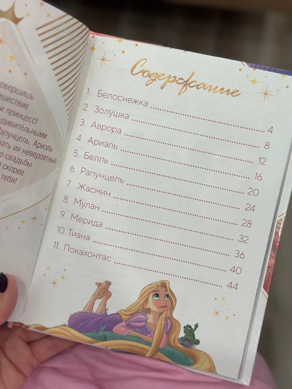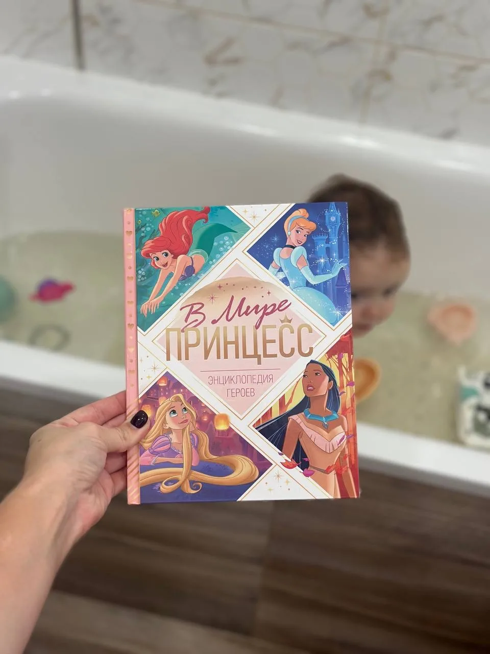 Шикарная небольшая энциклопедия о принцессах «В мире принцесс. Энциклопедия героев». Внутри собрана вся главная информация о них и краткая история.