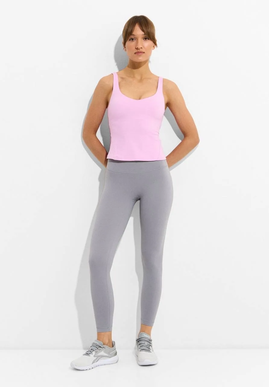 Сегодня забрала на Ламода новый комплект - штаны и майка (серые леггинсы и розовый топ очень красиво смотрятся вместе). И меня очень порадовала продуманность маек, ткань, фасоны, но я во всем как Гулливер🤣