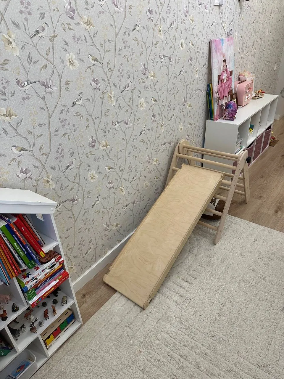 По сути все было переставлено из-за горки (и то стоит так себе🤣, но уж как позволила жил площадь). Посмотрим месяца 2, если будет на ней играть, то оставим, если нет, то опять немного все переставлю.