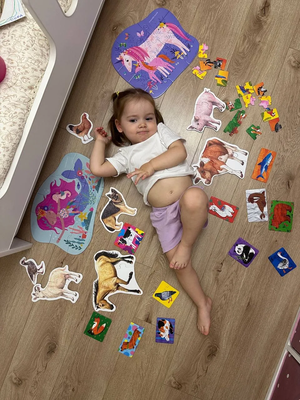 ✔️Маленькие пазлы она на 90% собирает сама, иногда я ей подсказываю, если что-то идет не так. А вот большие мы собирали вместе, я помогала ей искать ориентиры при сборке.