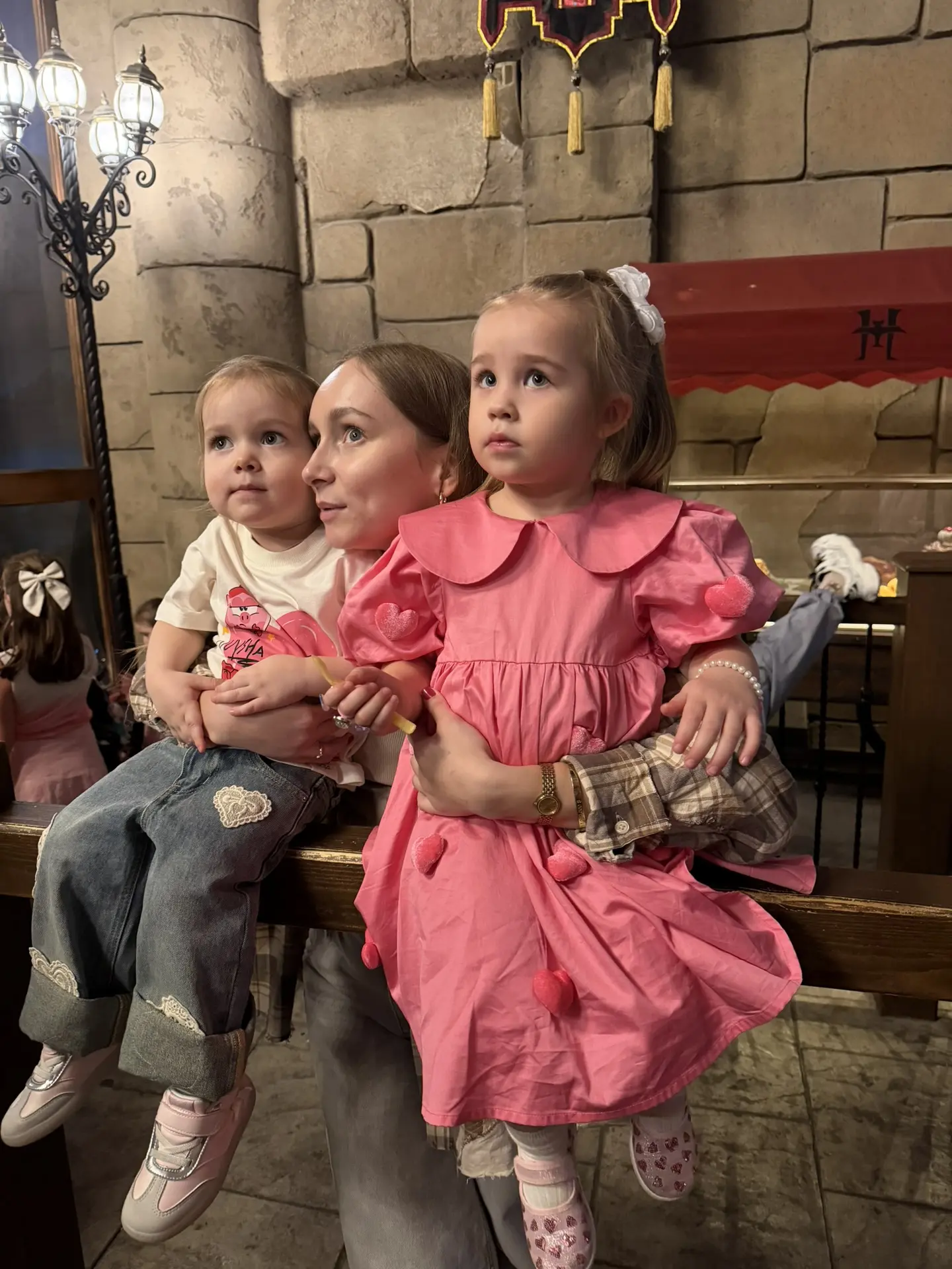 Изначальный мой план побежать кататься самой на горках, а Тему оставить за ответственного сопровождающего родителя провалился… Оказалось кататься с малышами очень даже весело. Для них все так удивительно, а для нас взрослых все так мило🥹