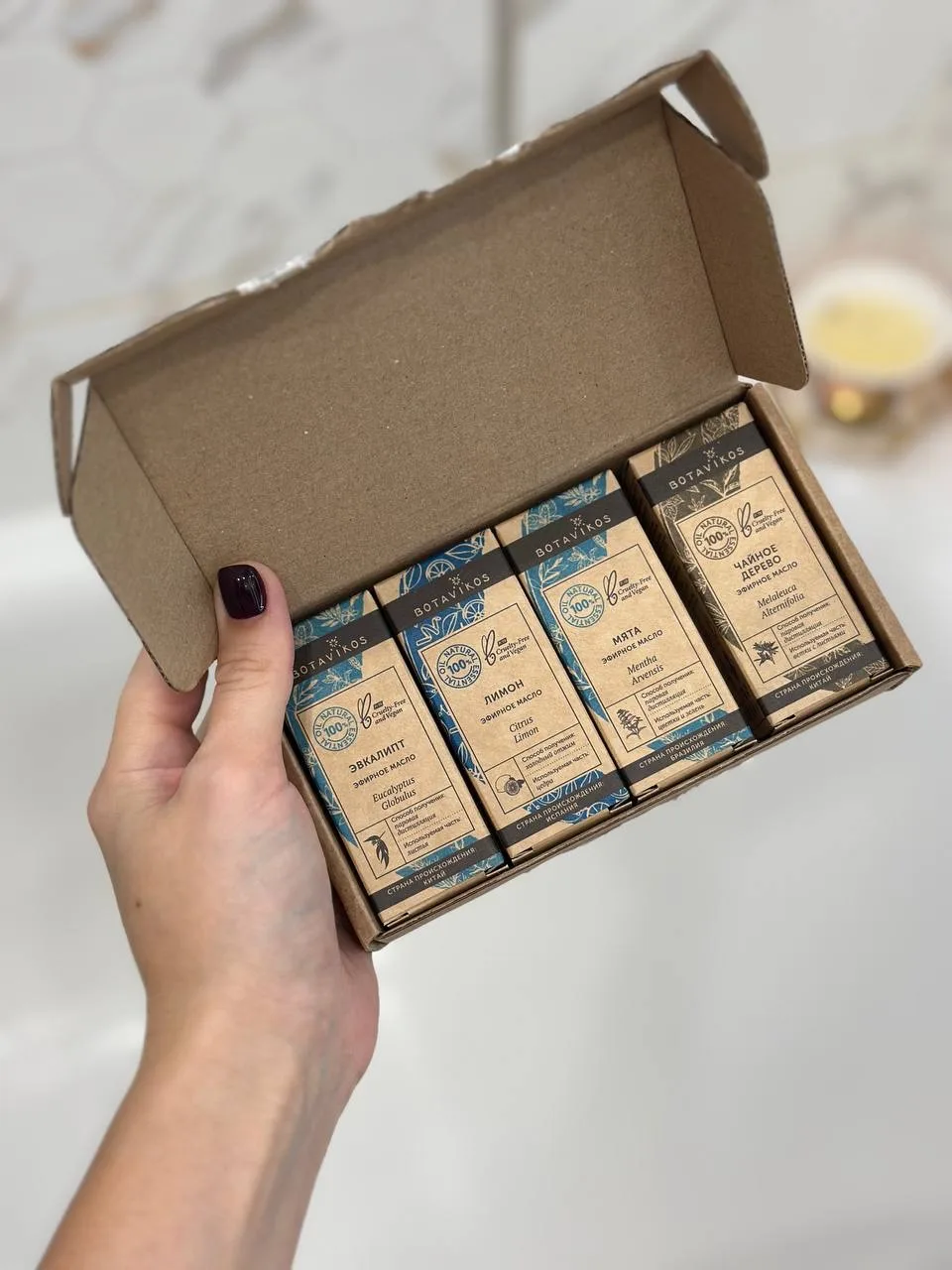 Заказала набор эфирных масел масел из любимых свежих ароматов: чайное дерево, эвкалипт, лимон, мята.