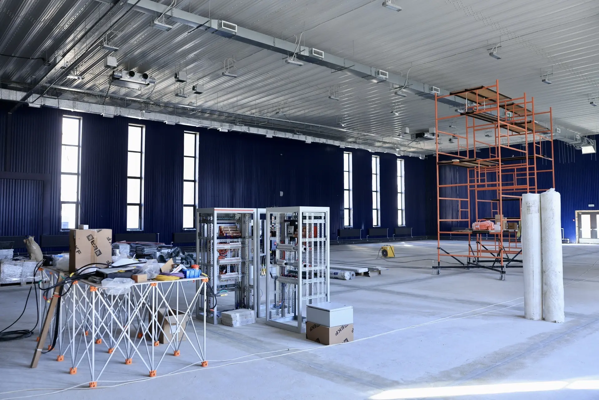 Проект реализуется при поддержке Федерации настольного тенниса России. В настоящее время основные строительные работы завершены, готовы инженерные сети. Сейчас здесь идут отделочные работы, в скором времени строители приступят к благоустройству территории.