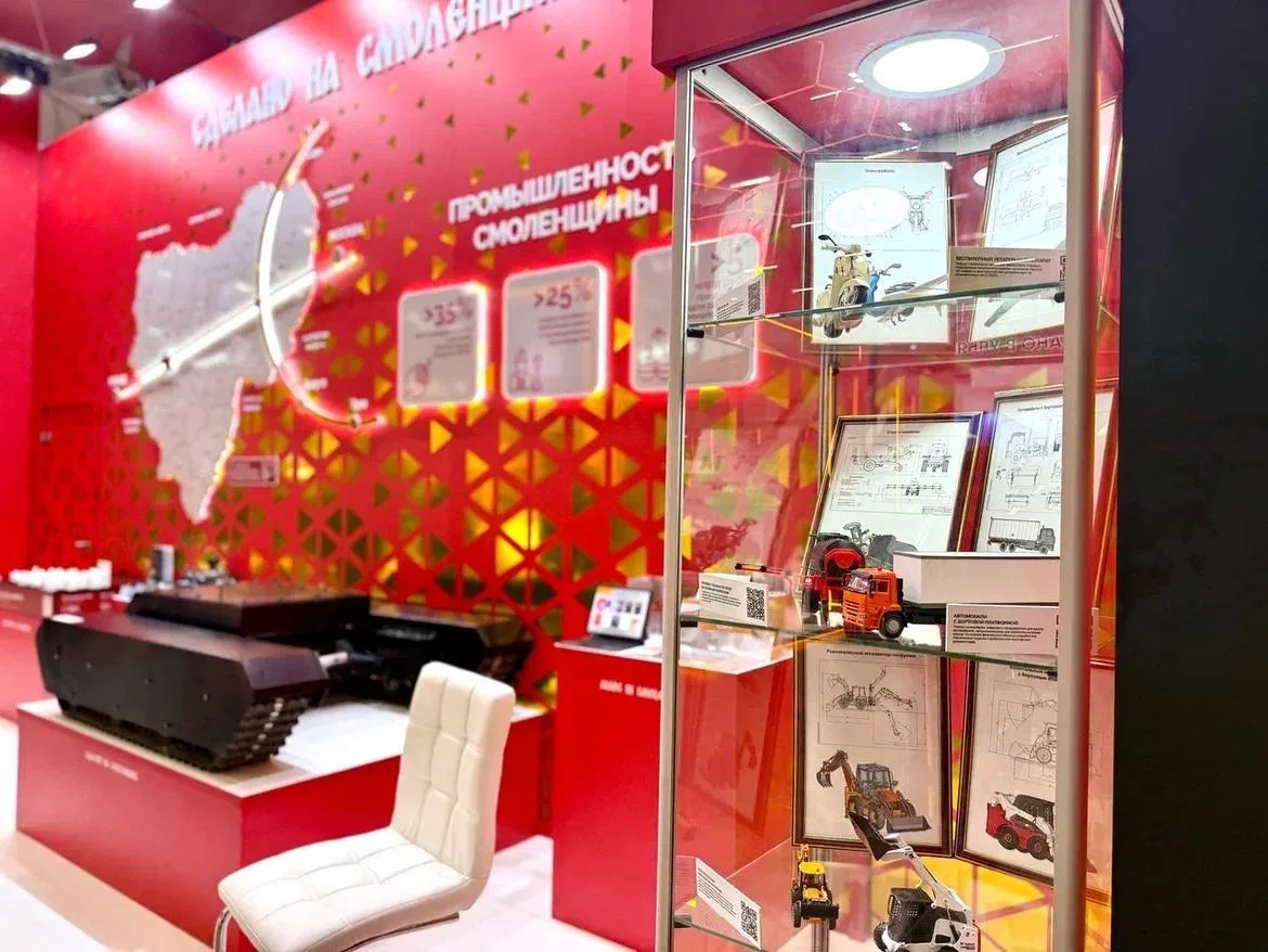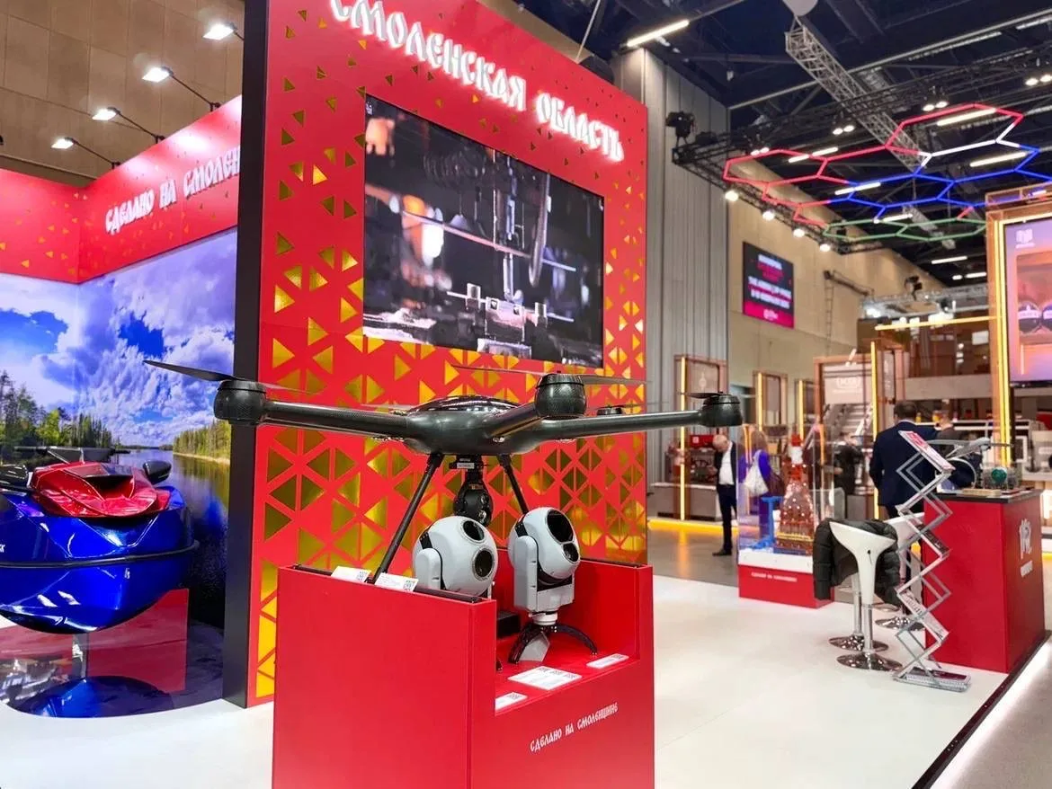 На стенде Смоленской области представлены уникальные разработки предприятий региона: современные беспилотники с оптико-электронными системами, инновационные платформы, новейший наземный беспилотник, тормозные системы для автомобилей МАЗ, решения в сфере обратного инжиниринга, цифровая экосистема "Диспетчер", а также первый отечественный гидроцикл, созданный на Сафоновском заводе "Авангард".