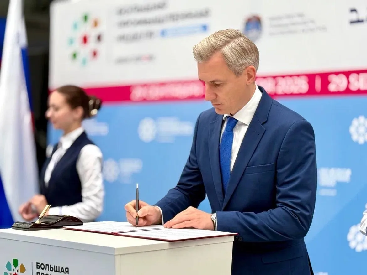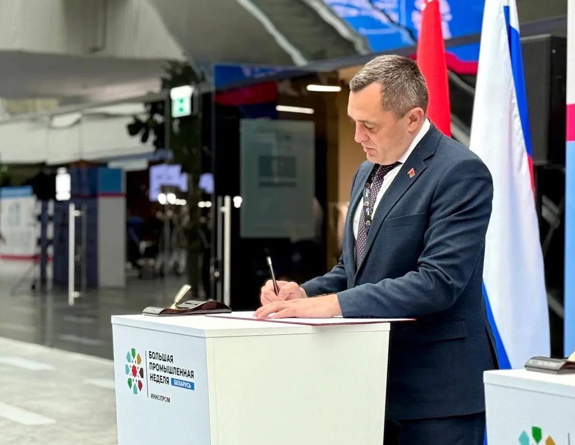 Республика Беларусь является главным торговым партнером нашего региона. По итогам 2024 года товарооборот достиг рекордных показателей – 294 млрд рублей, это третье место в стране. Развиваем и укрепляем наше сотрудничество. Совместно с Витебским областным исполнительным комитетом в Смоленске откроем торгово-выставочный центр белорусских производителей. Соответствующее соглашение подписали сегодня в Минске в рамках выставки "ИННОПРОМ" с председателем облисполкома Александром Михайловичем Субботиным.