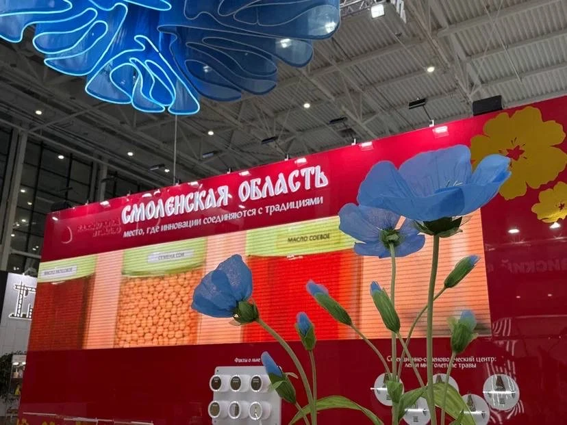 Тема экспозиции Смоленской области — "Место, где инновации соединяются с традициями". На стенде представлена продукция 19 предприятий региона: известный вяземский пряник, хлеб и выпечка по старинным рецептам, рыбная, молочная продукция и сыры, овощные консервы и многое другое. Большая часть стенда посвящена смоленскому льну. Мы много внимания уделяем возрождению культуры, которой всегда славилась смоленская земля.
