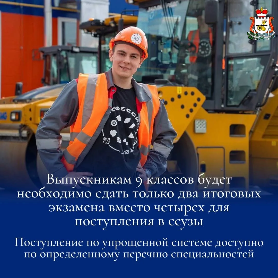 Эксперимент стартовал в прошлом году в трех субъектах – в Москве, Санкт-Петербурге и Липецкой области – и был признан эффективным. С этого года эта практика будет применяться еще в 9 регионах, в числе которых и Смоленская область. Для поступления в колледжи и техникумы выпускникам 9 классов будет достаточно сдать только два обязательных экзамена – русский язык и математику. После этого школьник гарантированно зачисляется на бюджетное место по 25 профессиям и специальностям из регионального перечня. Полный список смотрите в карточках.