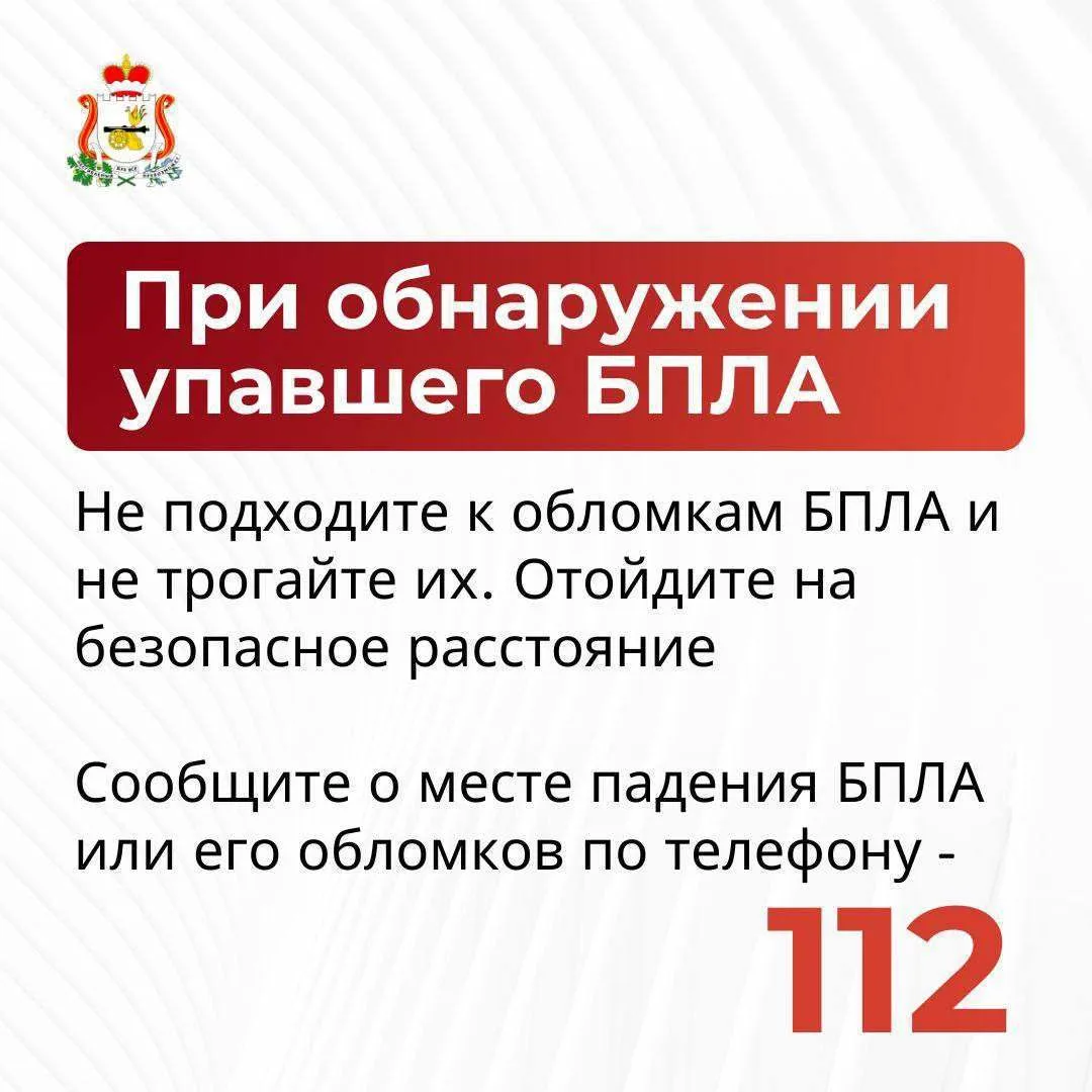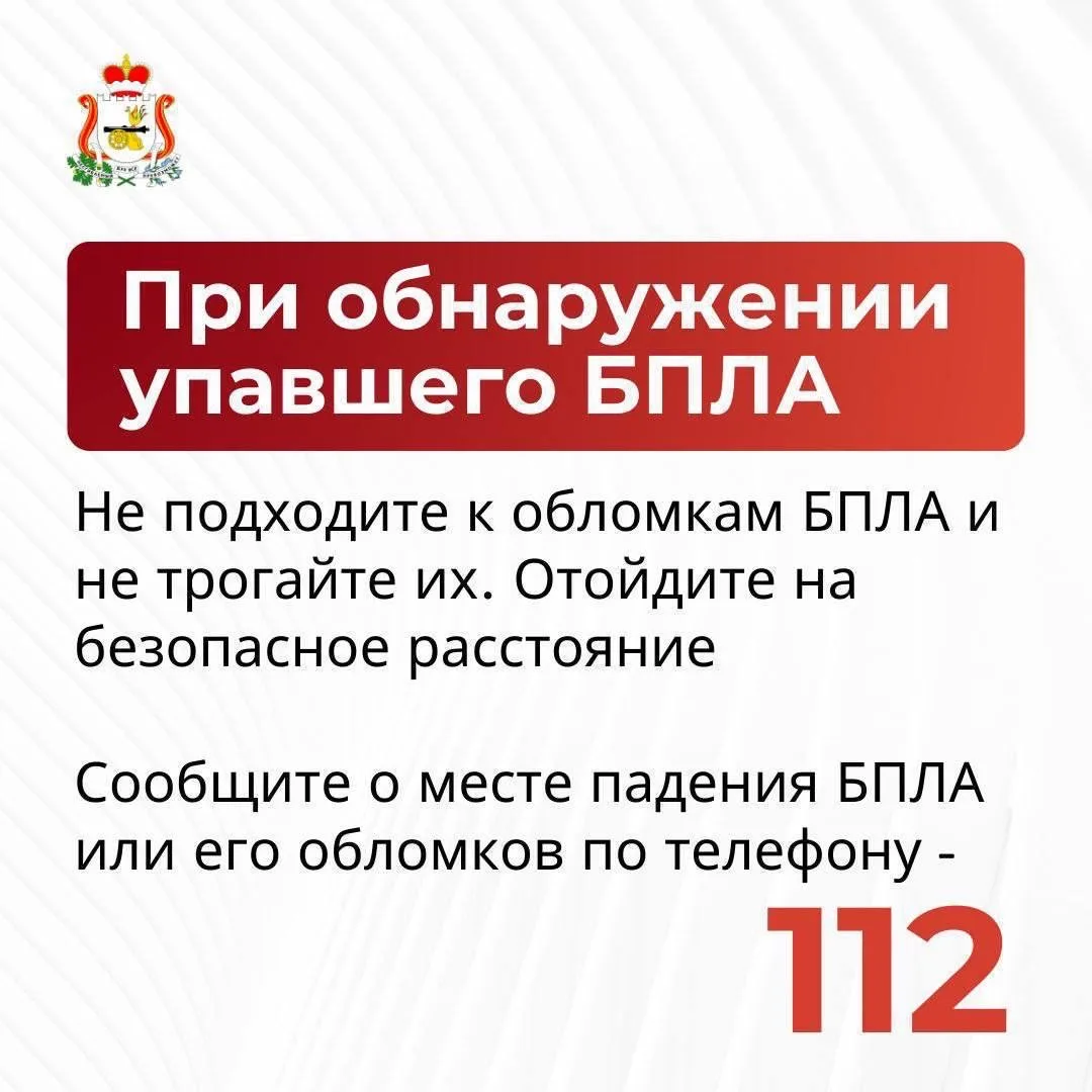 Убедительная просьба при обнаружении частей беспилотных летательных аппаратов не приближаться к ним. Об их местоположении сообщите по телефону 112.