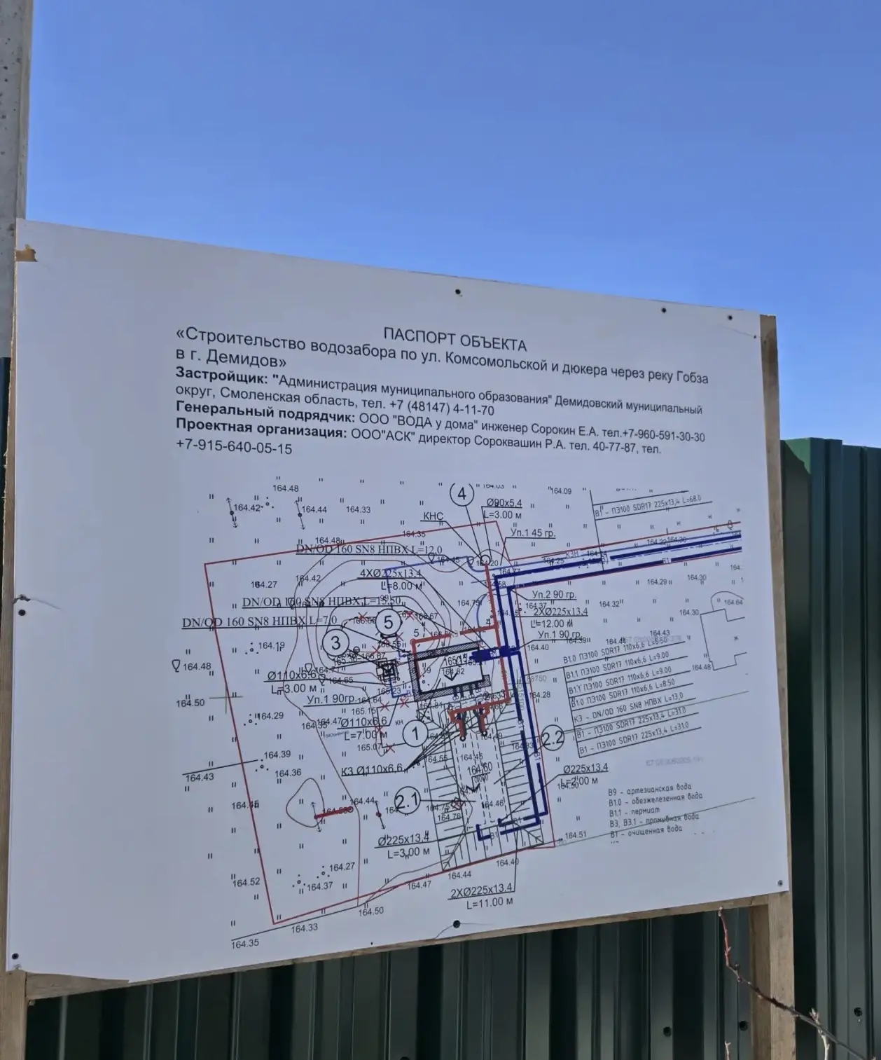 В Демидове в настоящее время идет строительство водозабора по улице Комсомольской с прокладкой участка трубопровода через реку Гобза. На сегодня строительно-монтажные работы выполнены на 70%. В Дорогобужском муниципальном округе ведется реконструкция водозабора в деревне Ивонино. Проект включает строительство станции водоподготовки, прокладку нового трубопровода и реконструкцию действующих водопроводных сетей. Строительная готовность объекта составляет 85%. Сама станция уже введена в работу.
