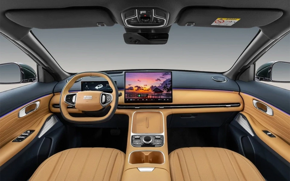 Топовая комплектация оснащена панорамной крышей, камерами кругового обзора, проекционным дисплеем, атмосферной подсветкой салона, а также премиальной аудиосистемой Flyme Sound с 16 динамиками и сабвуфером.