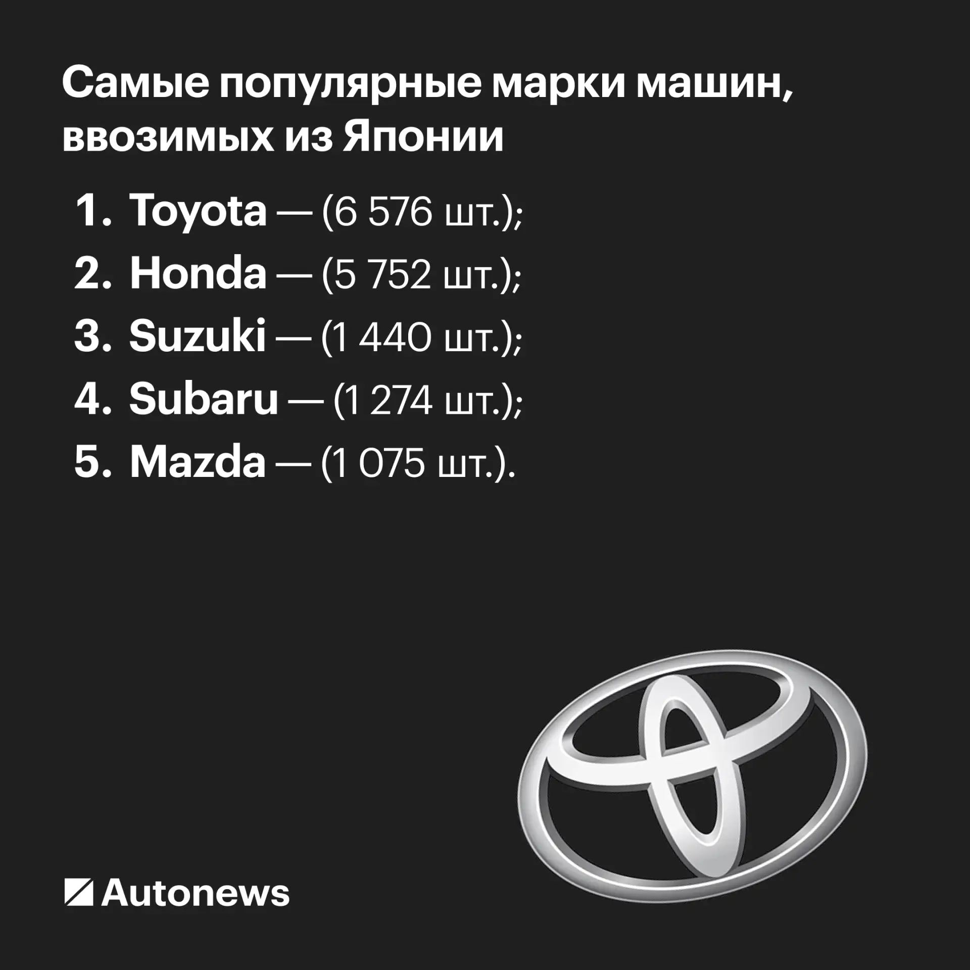 «Всего с начала года из Японии в Россию импортировано 192 тыс. легковых автомобилей с пробегом. Это на 8% меньше, чем за 11 месяцев прошлого года (209,2 тыс. шт.)», — добавил Целиков.