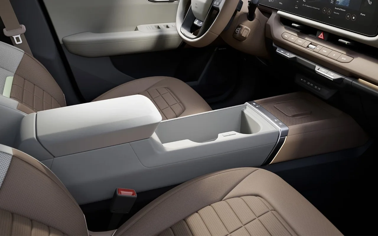 Автомобиль оборудуют тонкими вертикальными светодиодными фарами, широкой решеткой радиатора со встроенными ходовыми огнями, «утопленными» дверными ручками и фонарями необычной формы. В целом дизайн новинки чем-то напоминает электрический Kia EV5.