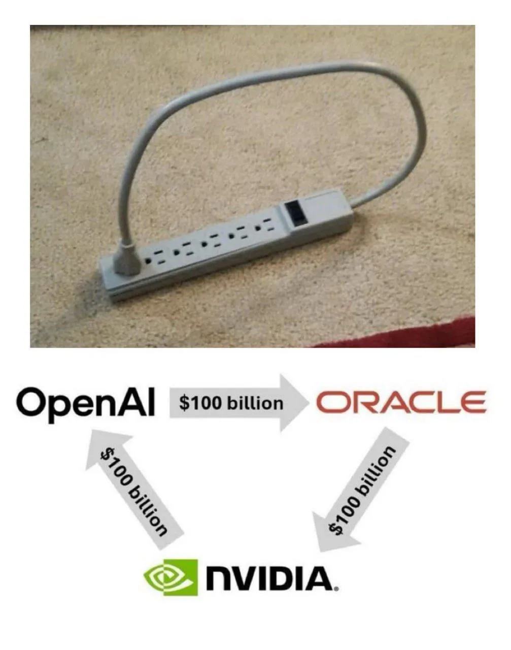 ▪️Рейтинговое агентство Moody’s изменило прогноз рейтинга Oracle со стабильного на негативный из-за рисков, которые несет громадный контракт с OpenAI на $300 млрд. Один из основных рисков — «контрагентский», связанный с тем, что Oracle сложил все яйца в одну корзину под названием OpenAI.