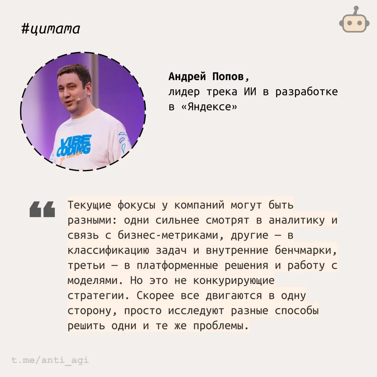 Попросили лидера трека ИИ в разработке в Яндексе Андрея Попова, пояснить, как он видит происходящее сегодня внутри больших команд.