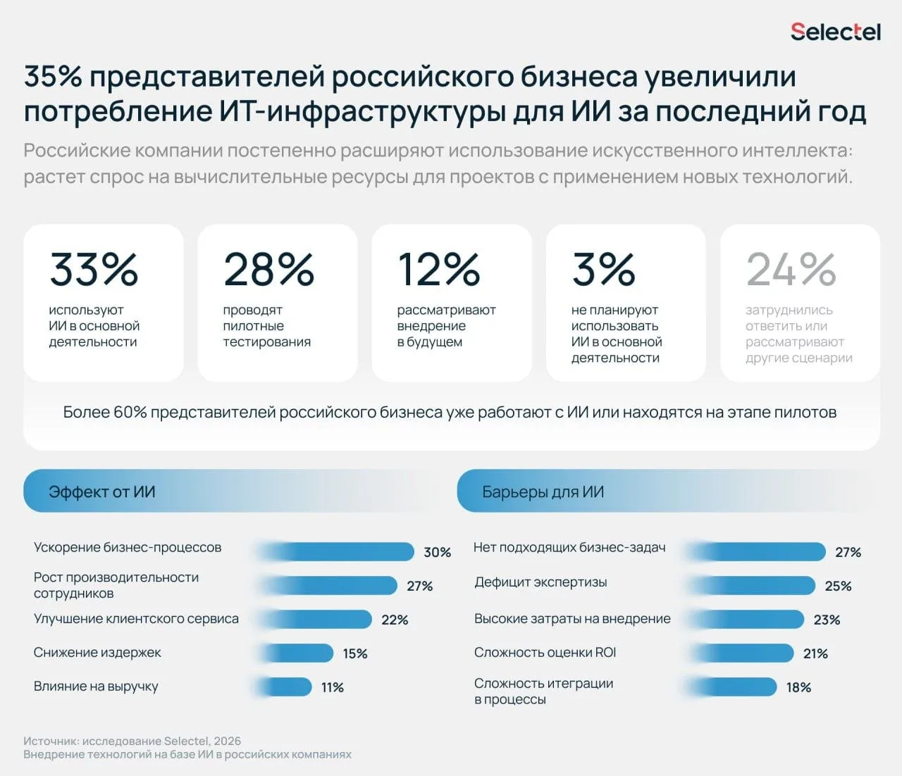 Больше трети компаний в России уже встроили ИИ в свои бизнес-процессы. Что отличает тех, кто получает от этого реальную отдачу от тех, у кого ИИ пока только в виде pptx?