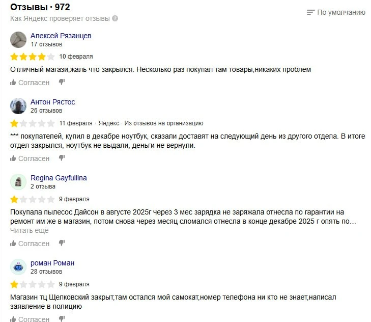 "Магазин тц Щелковский закрыт,там остался мой самокат,номер телефона ни кто не знает,написал заявление в полицию" (пользователь Роман)