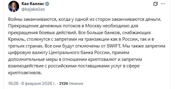 Недавно Кая сказала, что новые санкции затруднят финансирование СВО на Украине.