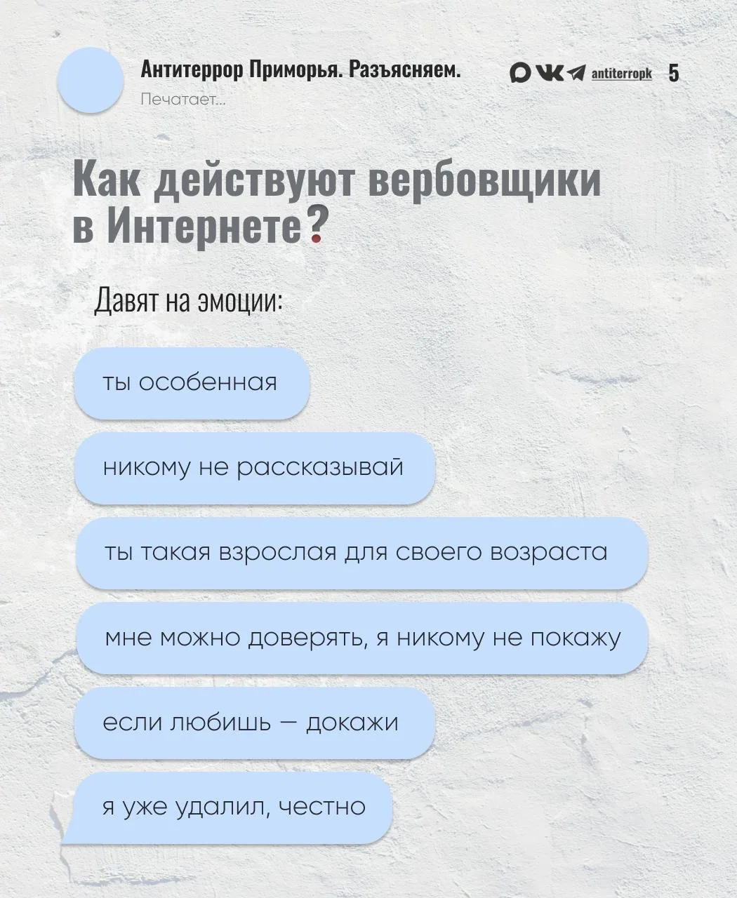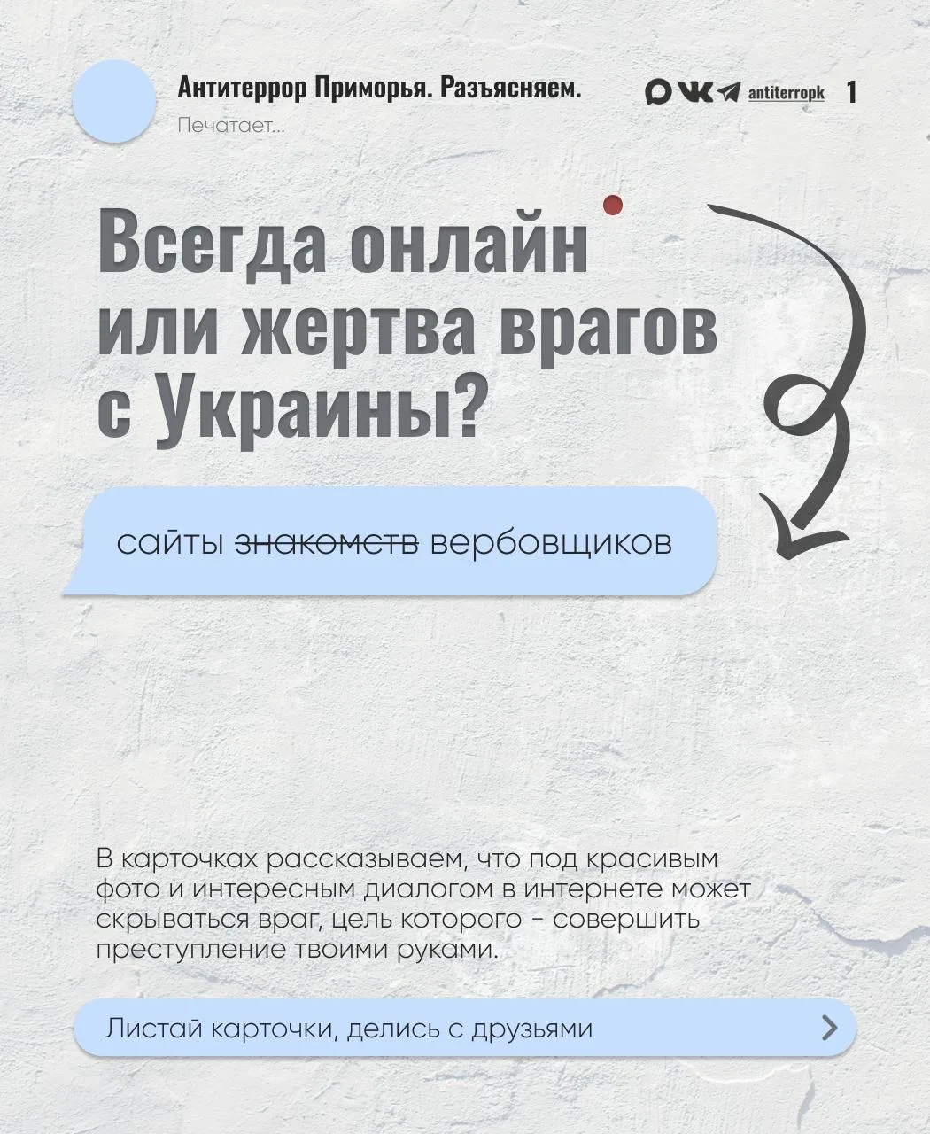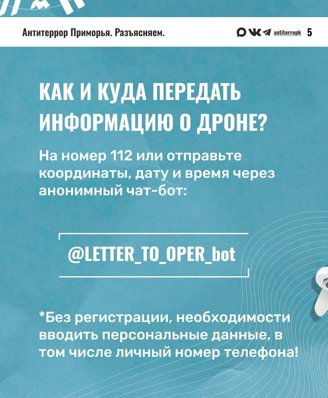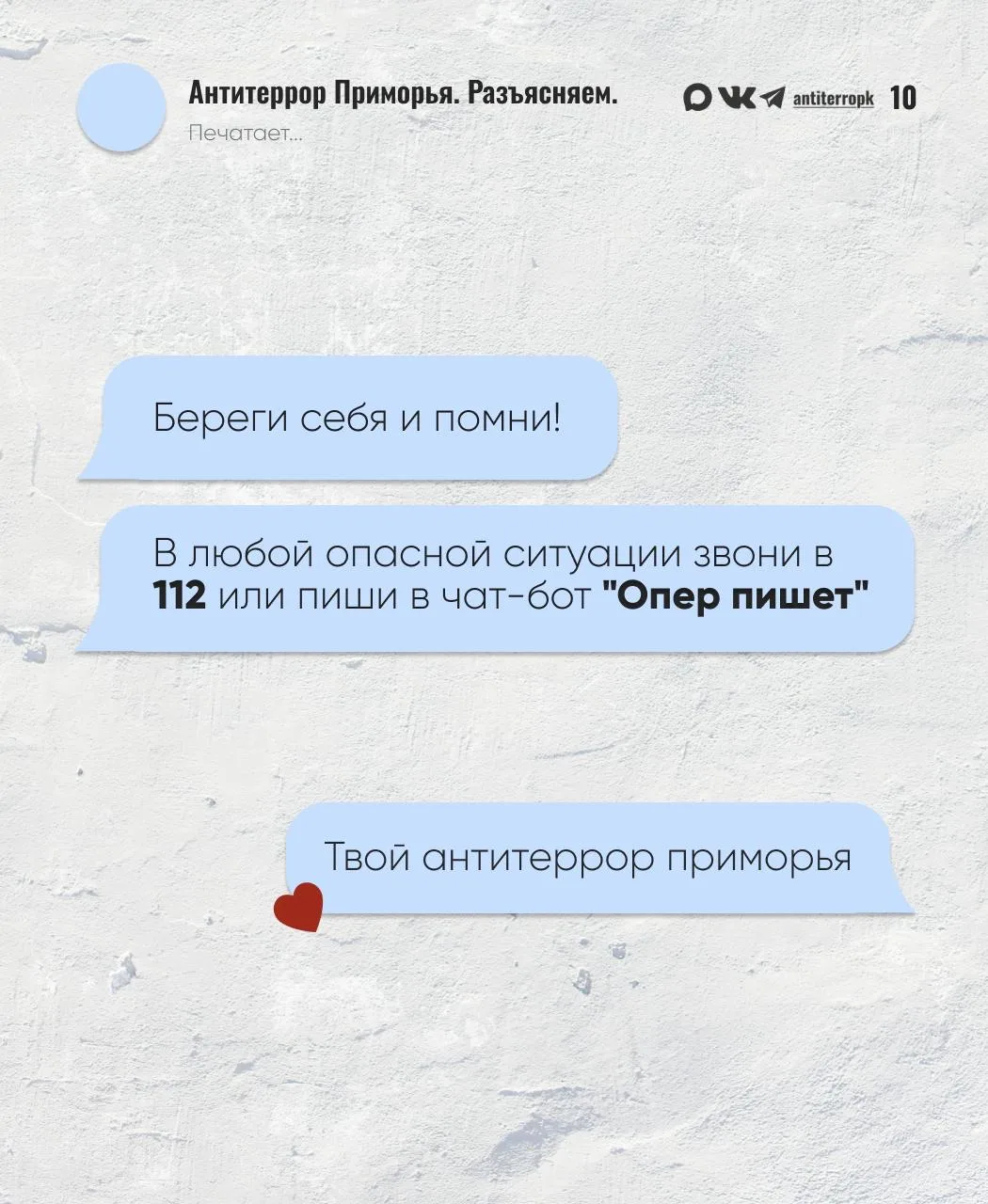 📌 Написать в Антитеррор Приморья анонимно: чат-бот «Опер пишет».