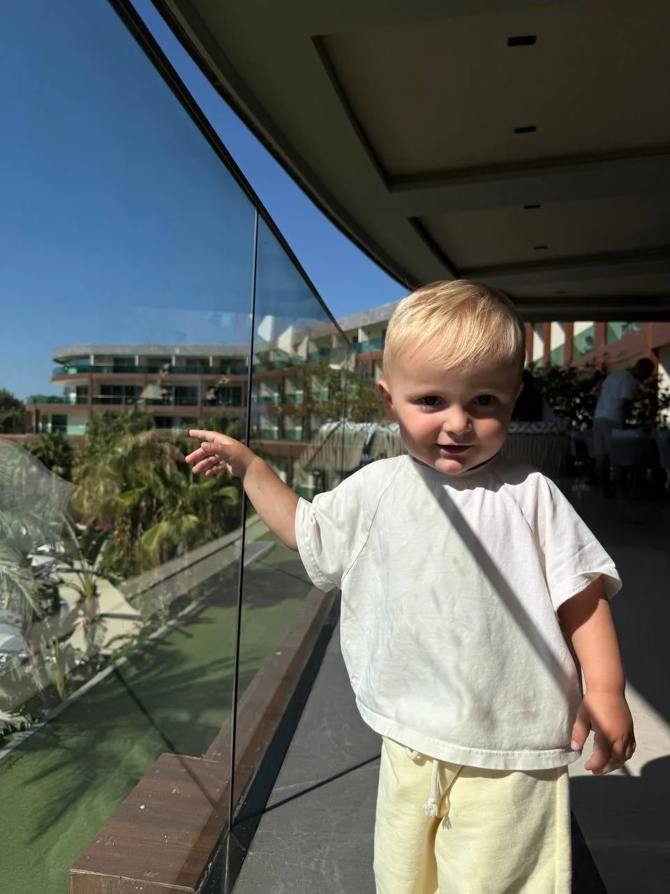 Просто Тео остался с папой, лук дня: летний костюм, вязаная кофта и кроксы🤣