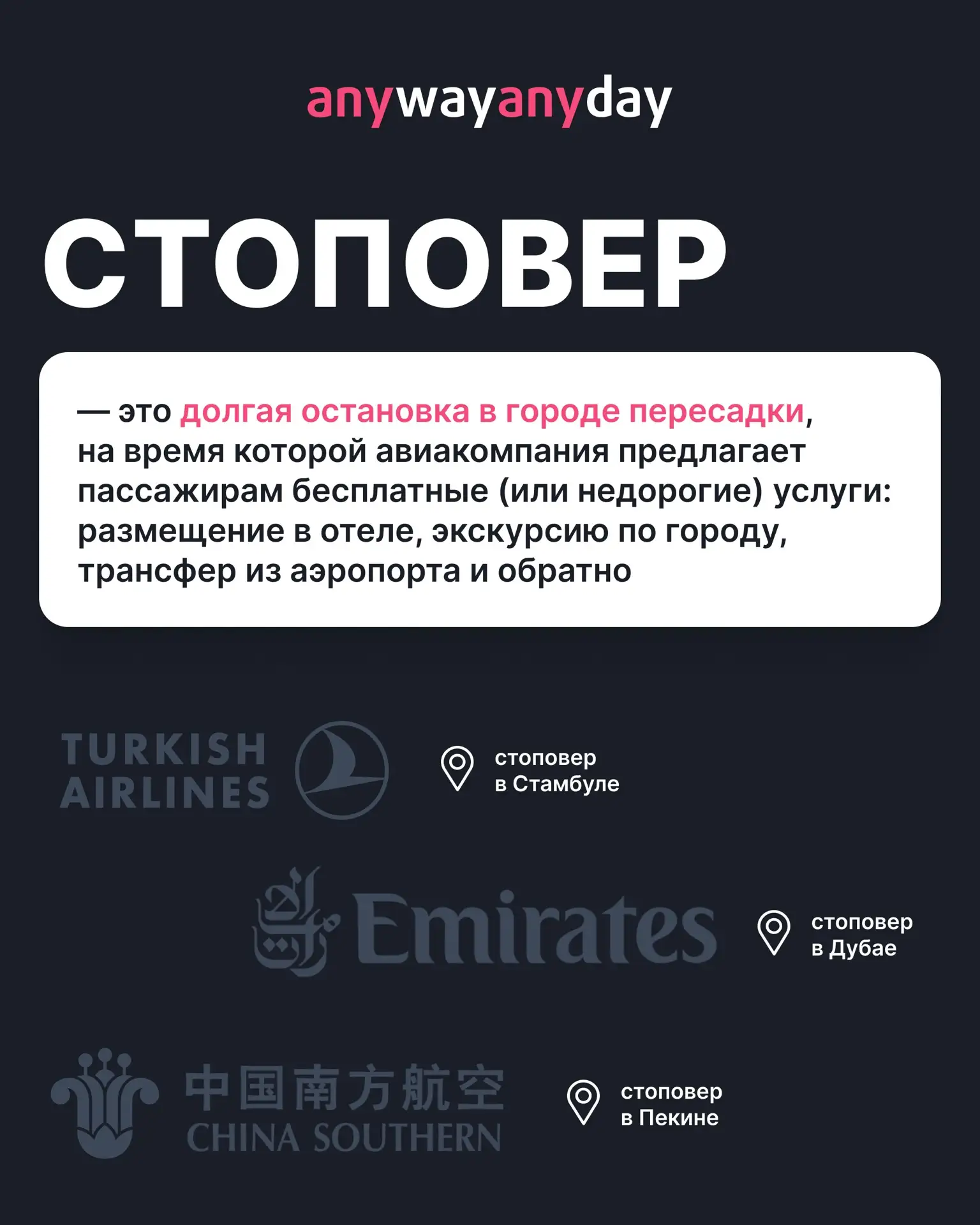 Подробнее об условиях стоповера рассказываем в карточках — листайте и отправляйтесь исследовать новые направления вместе с Anywayanyday ✈️