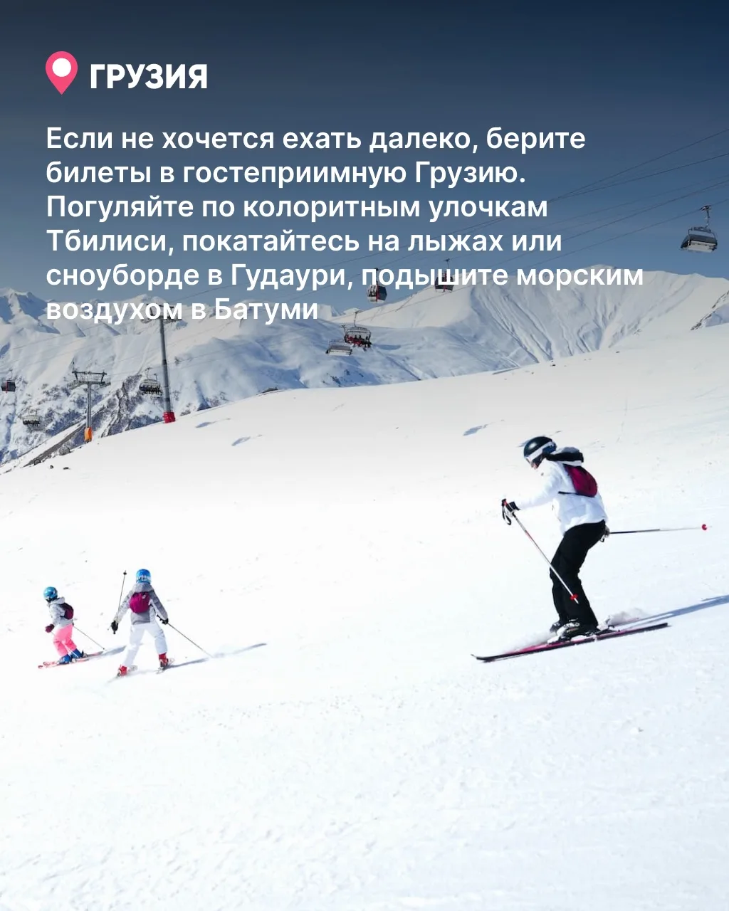 Учли пожелания снеголюбов, тусовщиков, и тех, кто предпочитает море сугробам — вы точно найдете что-то свое!