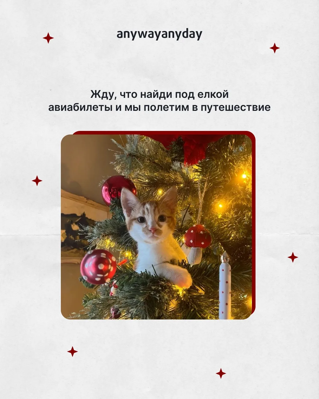 Листайте карточки и планируйте новогоднее приключение вместе с Anywayanyday ✨ Поможем найти выгодные авиа- и ж/д билеты в любом направлении!